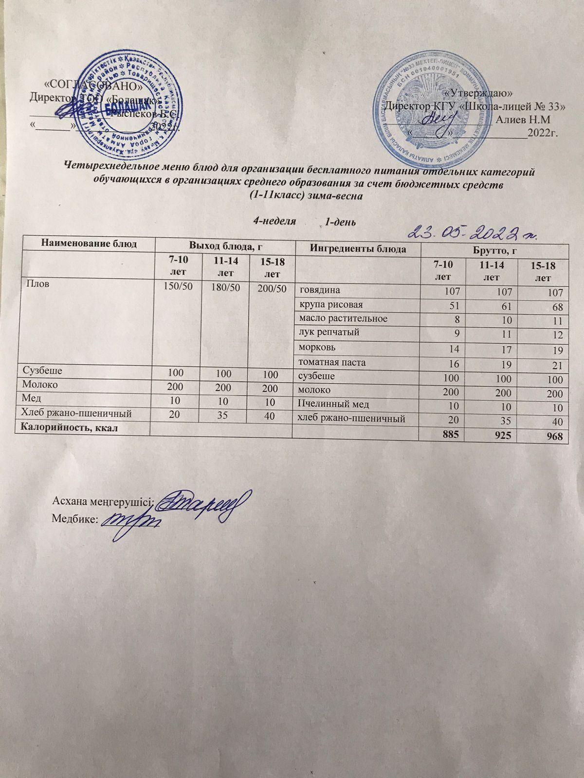 » Ас мәзірі 4-ші апта, 1-ші күн