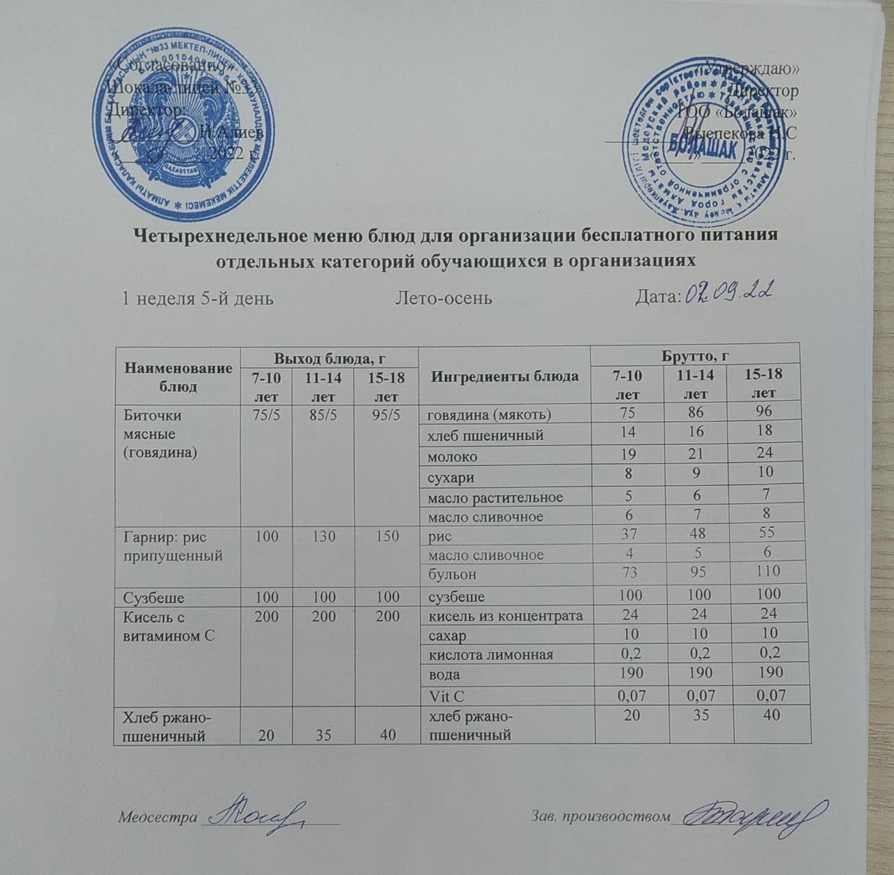 » Ас мәзірі.Жаз-күз. 1-ші апта, 5-ші күн