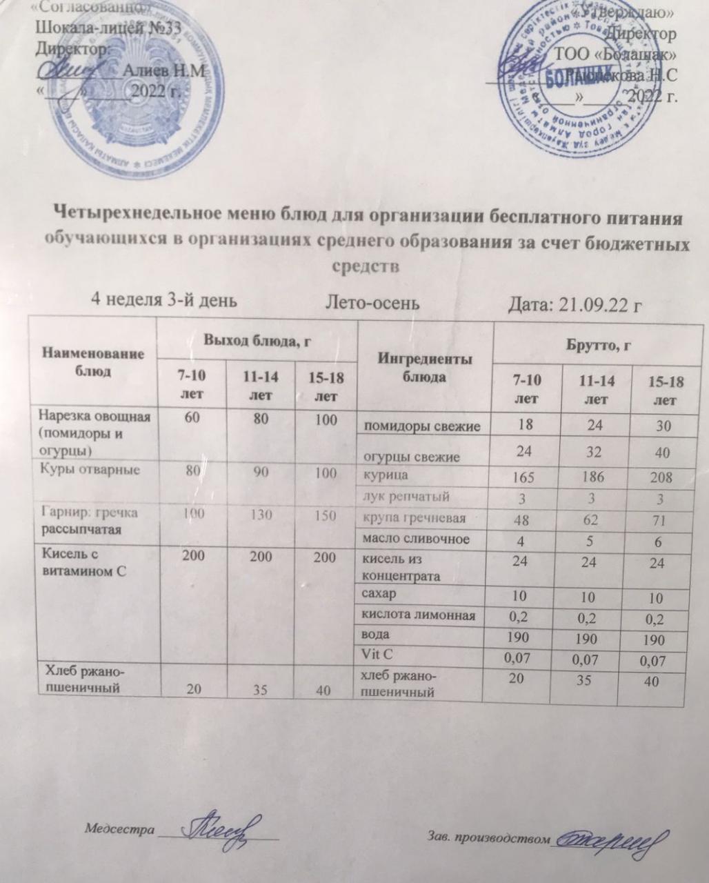 Ас мәзірі.Жаз-күз: 4-ші апта, 3-ші күн