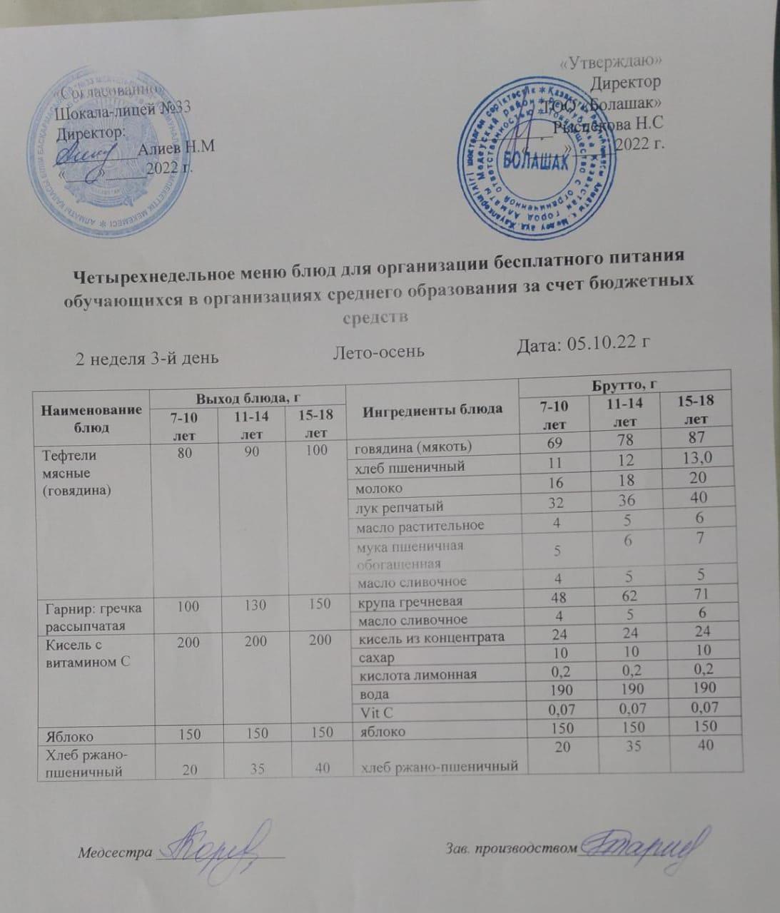 Ас мәзірі Жаз-күз: 2-ші апта,3-ші күн